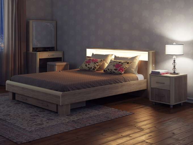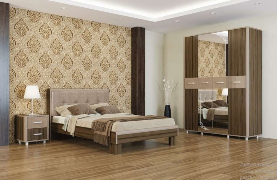 Цена на сайте указана за комплект на первой фото: Кровать с мягкой спинкой 1,6 Модуль 2.2 , Тумба прикроватная, Шкаф 4-х дверный.