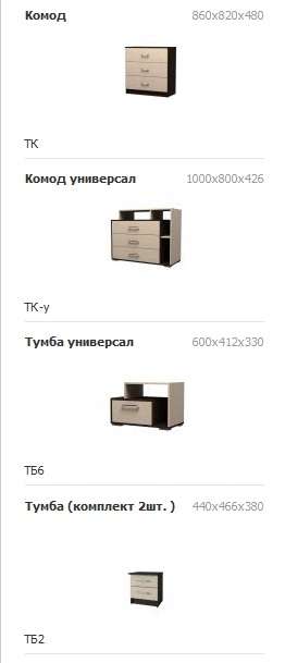 Цена указана за комплект на фото: Комплектация: (ШхВхГ).