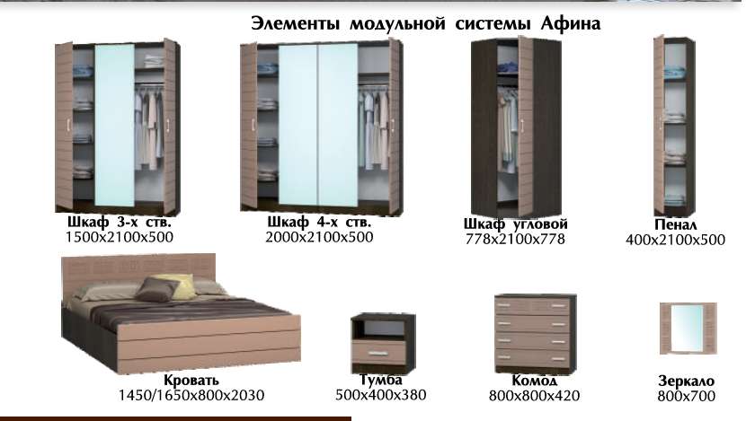 Спальный гарнитур «Афина» модульный (ВВР)