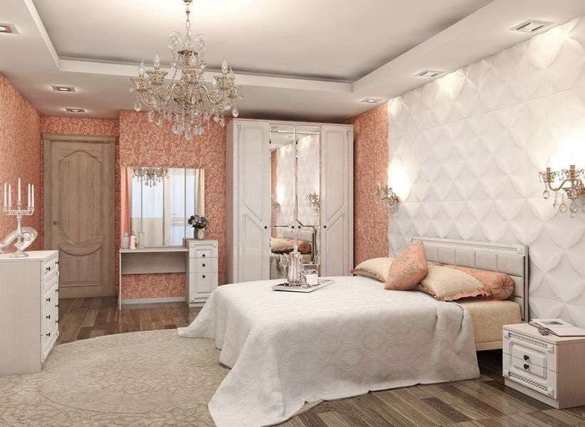 - Спальня, выполненная в новом декоре ЛДСП и МДФ -БОДЕГА БЕЛЫЙ, с использованием мягкого элемента «Белый Пунто, являет собой удивительное сочетание шикарного белого цвета и приятного тактильного ощущения.