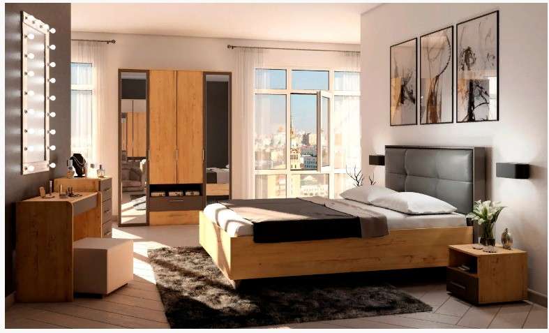 Ортопедическая решетка и ортопедическая решетка с подъемным механизмом и большим бельевым ящиком; большие зеркальные шкафы, несколько видов комодов, один из которых с открытой штангой, и небольшой туалетный столик помогут вам создать функциональную и индивидуальную спальню.