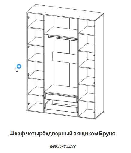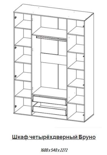 - Шкаф четырёхдверный Бруно, 1600 x 540 x 2272 мм - 22000 руб.