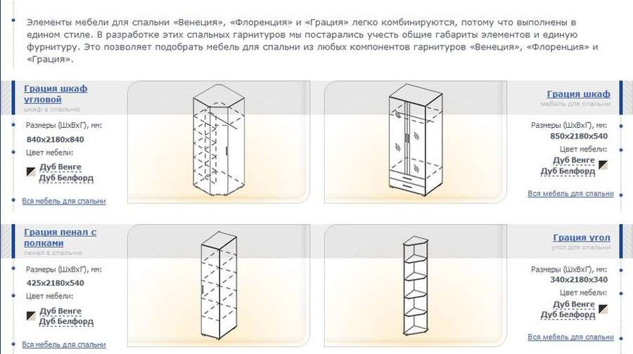 Модули, входящие в коллекцию «Грация»: (ШхВхГ)