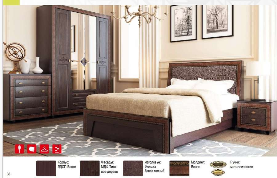 - Цвет : Венге, Зкокожа на изголовье - Броде темный.