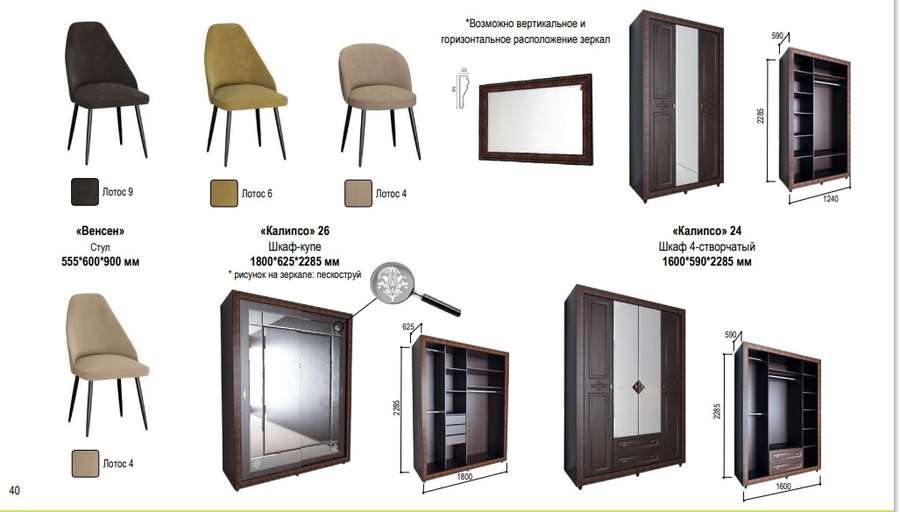Мебельная коллекция для спальни КАЛИПСО характеризуется прекрасным исполнением всех деталей, особенным декором всех изделий и элегантным общим видом, способным внести в спальню не только изысканность вашей спальне, но и уют.