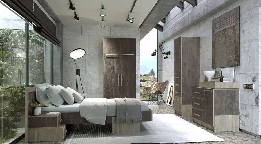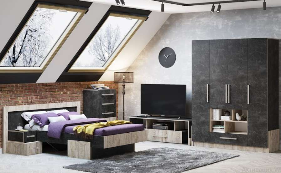 Цена на сайте указана за комплект на первой фото: Кровать, Тумбу прикроватную, Комод №2, Тумбу под ТВ и Шкаф 4-х ств.