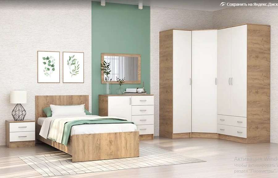 Цена на сайте указана за комплект на первой фото: Кровать арт.032 0,9 (низкий щиток) ,Тумба, Комод Створка/4 ящика, Зеркало, Пенал, Шкаф угловой, Шкаф 2х-ств./ящики.
