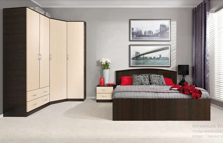 Цена указана за комплект на фото: Шкаф 2-ств. с 2-мя ящ, Шкаф угловой, Пенал, Тумба прикроватная, 2шт., Кровать арт. 032 (1,6) с настилом.