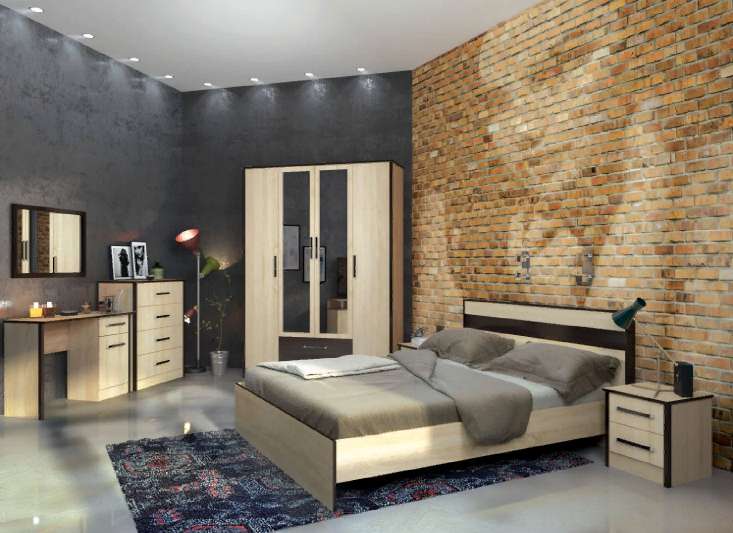 Цена указана за комплект На фото с кроватью 1,6м ЛДСП ЛК-1 , Шкаф 4-х ств., две тумбы ,комод, Стол косметический, Зеркало, стоимость гарнитура -44300 руб.