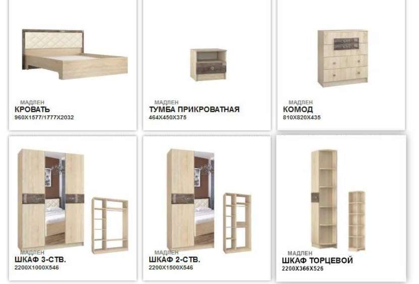 Модули, входящие в спальный гарнитур Мадлен и их стоимость: