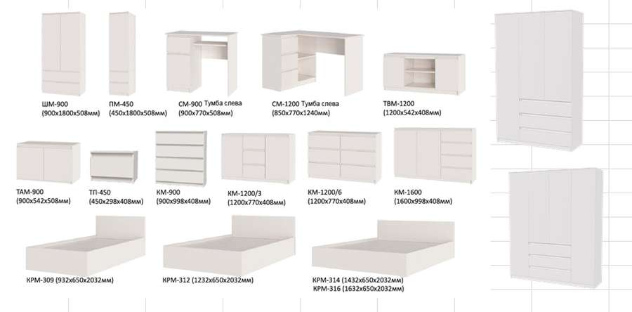 Цена на сайте указана за комплект на первом фото- Кровать 1,6м ,Комод КМ-1600, Шкаф 2-х ств. с Антресолью.