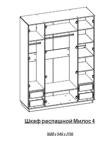 - Шкаф 4-х ств. Милос 4: 1600х546х2136 мм - 21500 руб.