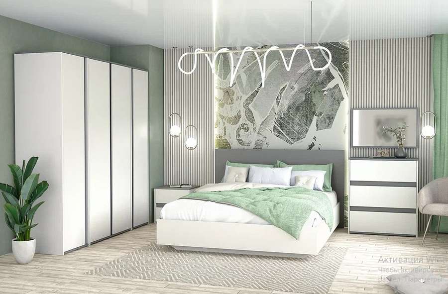 Модульная программа. Вы можете самостоятельно подобрать мебель для спальни по своему предпочтению.