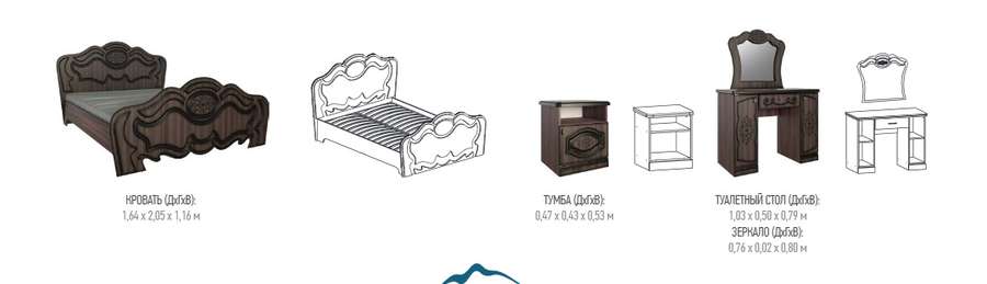 Цена указана с кроватью размером 1,4м, возможно заказать гарнитур с Кроватью «Жасмин» 1,6х2,0.
