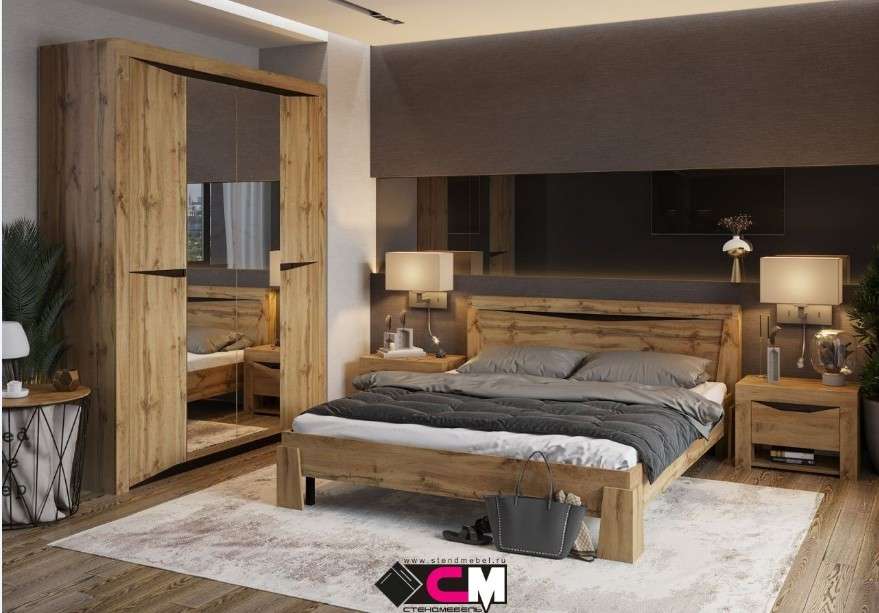 Цена на сайте указана за комплект на первой фото: Кровать 1,6м с настилом, Две прикроватные тумбы, Комод 3 ящика, Шкаф 3-х ств. - 30200 руб.