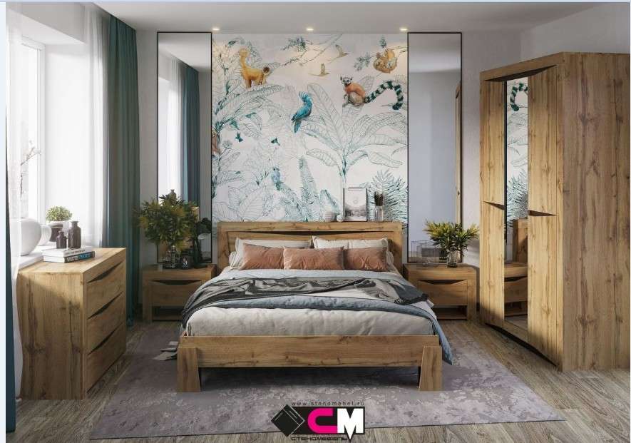 Цена на сайте указана за комплект на первой фото: Кровать 1,6м с настилом, Две прикроватные тумбы, Шкаф 4-х ств. -28000 руб.