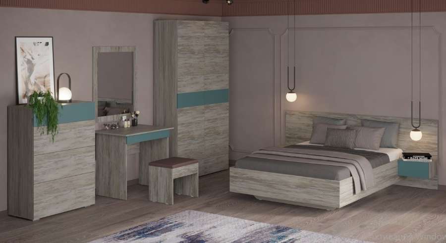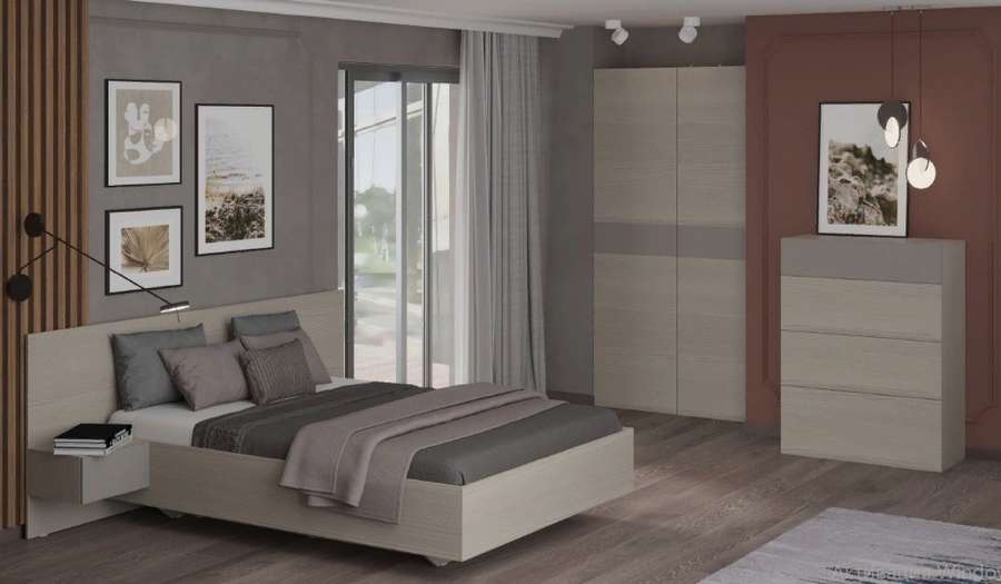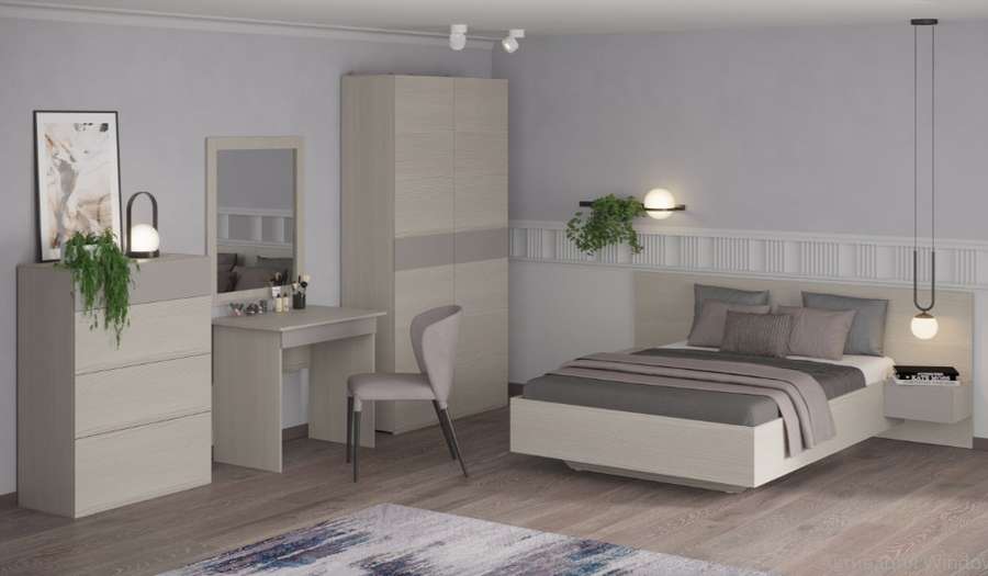 Цена на сайте указана за комплект на первой фото: Кровать №2-1400 (МДФ настил), Тумба прикроватная (подвесная), Шкаф 1 (платяной), Пенал с двумя доп.дверьми, Комод.
