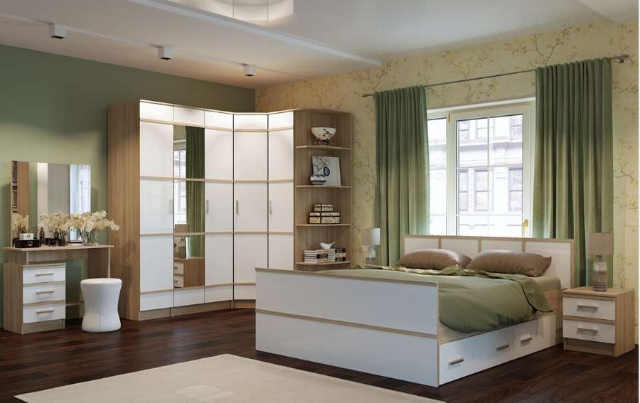 Спальный гарнитур «САКУРА» комп.3 модульный Белый глянец (Памир)