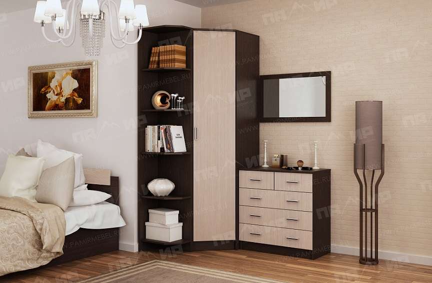 Цена на сайте указана за комплект на фото: Шкаф «Угловой», шкаф «Торцевой», кровать КР1400, комод К800 3/2, Зеркало.