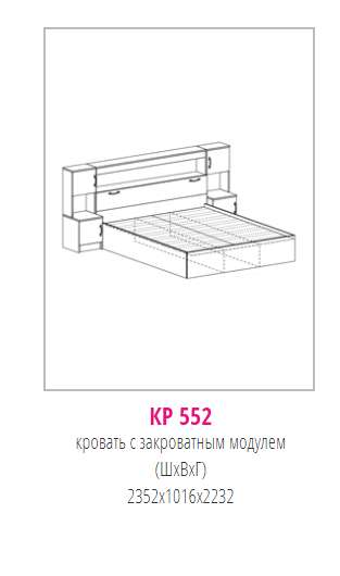 Размер кровати 1,6м: 2352х1024х2232мм. (ШхВхГ) Спальное место 1600х2000.