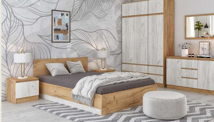 Кровать из модульного спального гарнитура Марчел, основание ЛДСП и ЭКО.