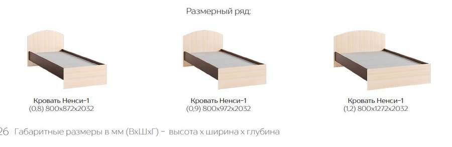 - Кровать 1,2м, 800х1272х2032 мм - 5700 руб.