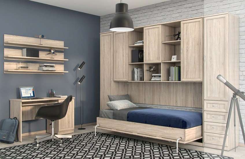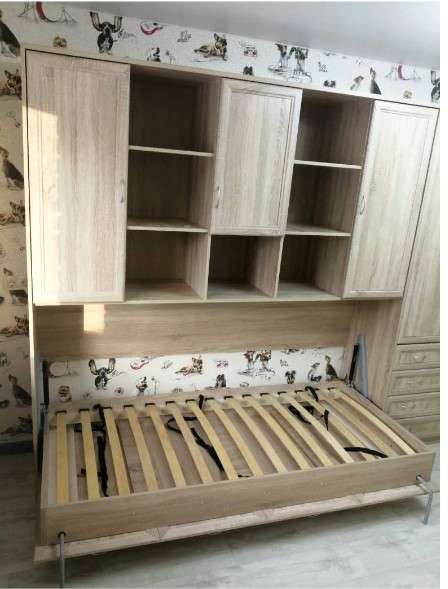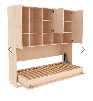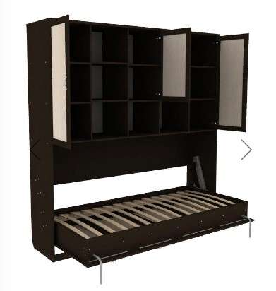 Комфортабельная односпальная кровать - шкаф, своим строгим и элегантным видом украсит не только спальню, но и гостиную. Верхняя часть шкафа оборудована закрытыми и открытыми полками, на которых можно разместить книги, сувениры и множество других мелочей.