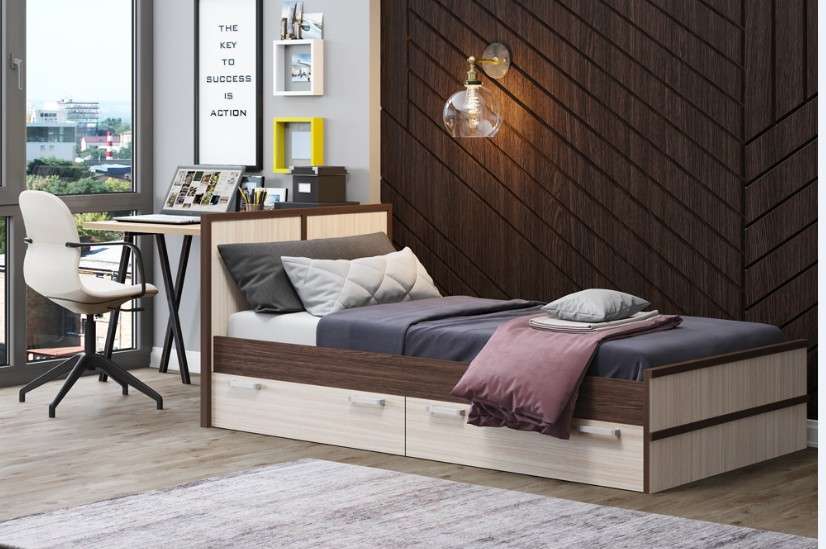 - Кровать оснащена двумя выдвижными ящиками .