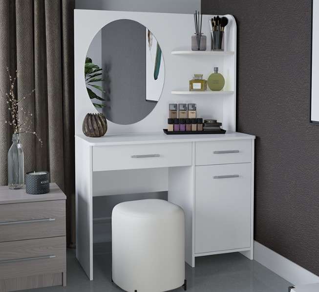 Современный туалетный столик с зеркалом ,ящичками и полочками Эвита станет вашим верным хранителем красоты и различных предметов туалета и косметики.
