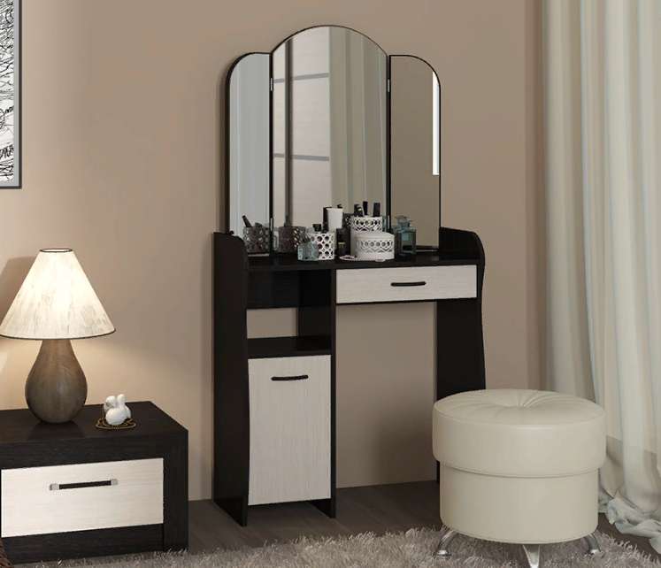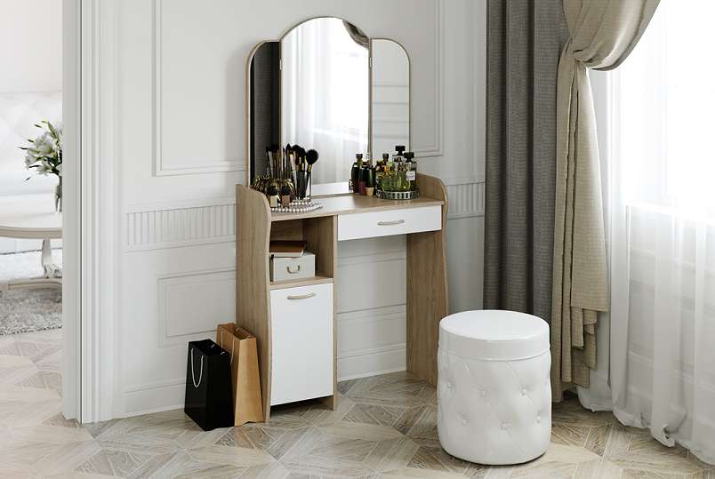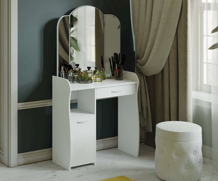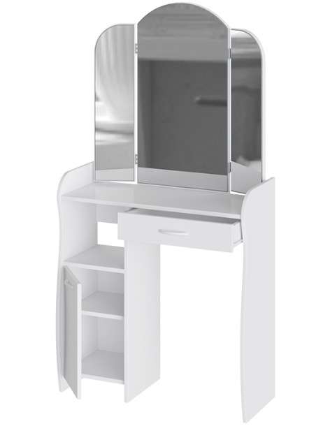Современный туалетный столик с большим зеркалом , ящичком и полочками станет вашим верным хранителем красоты и различных предметов туалета и косметики.
