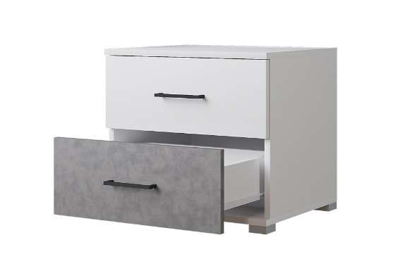 Тумба имеет два выдвижных ящика. Материал ножек - пластмасса, регулируемые. Материал ручек - пластмасса, на ощупь бархатные.