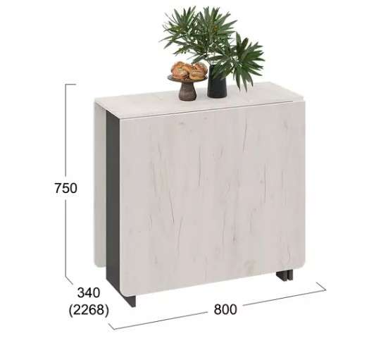 Размеры: В сложенном виде Ш 800 х Г 340 х В 750мм, В разложенном виде длина стола 2268мм. Ш 800хВ 750мм.