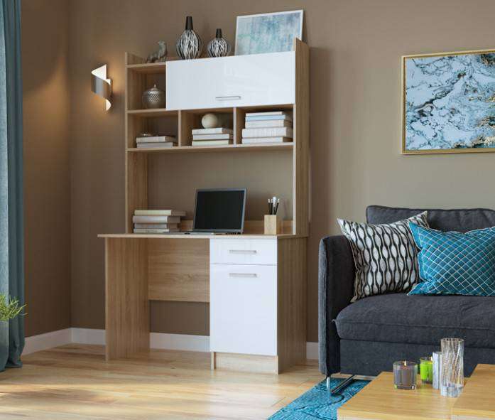 В цвете Корпус – Дуб Сонома/ Фасад – Белый глянец стоимость стола - 6600 руб.
