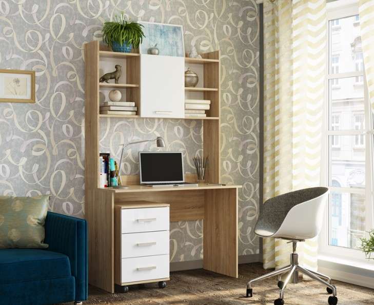 Основным преимуществом этой модели является принцип модульности: отдельным предметом можно приобрести письменный стол; установить на него, при желании, надстройку. Если нужны ящики для хранения предметов и принадлежностей – в помощь пользователю удобная выкатная тумба на колёсиках. Направляющие тумбы – шариковые, полного выдвижения.