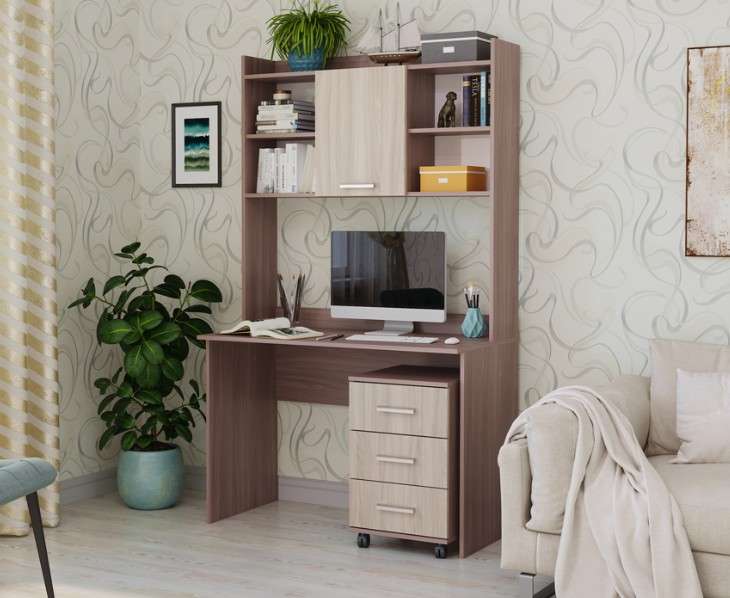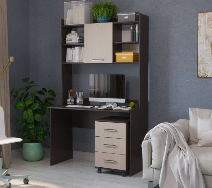 Основным преимуществом этой модели является принцип модульности: отдельным предметом можно приобрести письменный стол; установить на него, при желании, надстройку. Если нужны ящики для хранения предметов и принадлежностей – в помощь пользователю удобная выкатная тумба на колёсиках. Направляющие тумбы – шариковые, полного выдвижения.