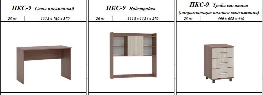 Размеры и цена модулей, входящих в состав стола: