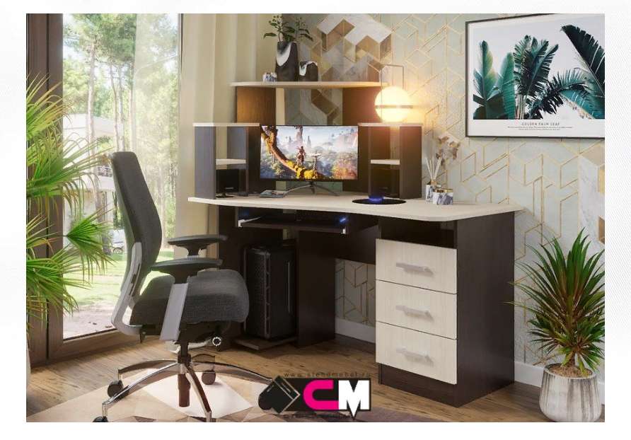 Удобный компьютерный стол впишется в любой интерьер квартиры и офиса. Компактный и вместительный.