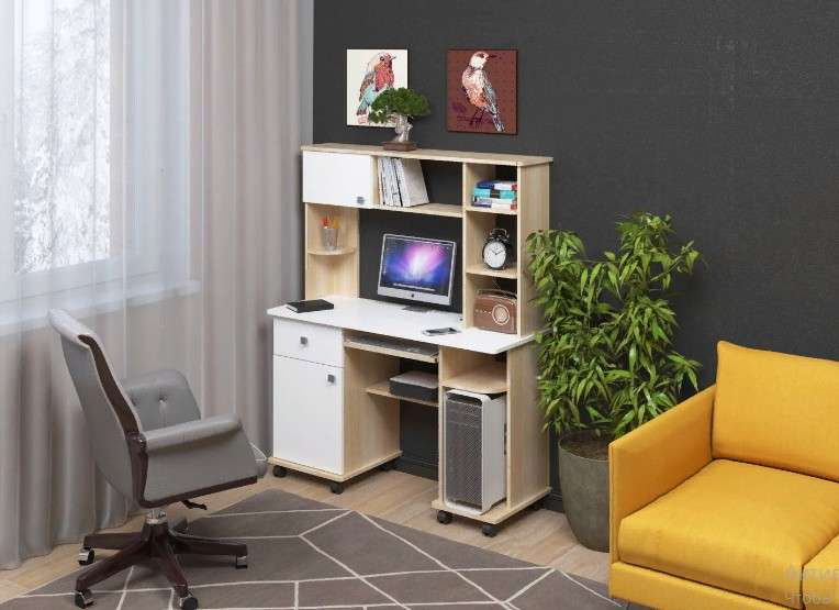 Простой и функциональный компьютерный стол, прекрасно подойдет для работы и учебы.