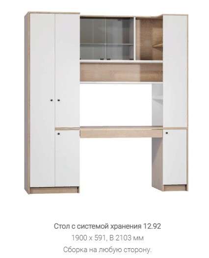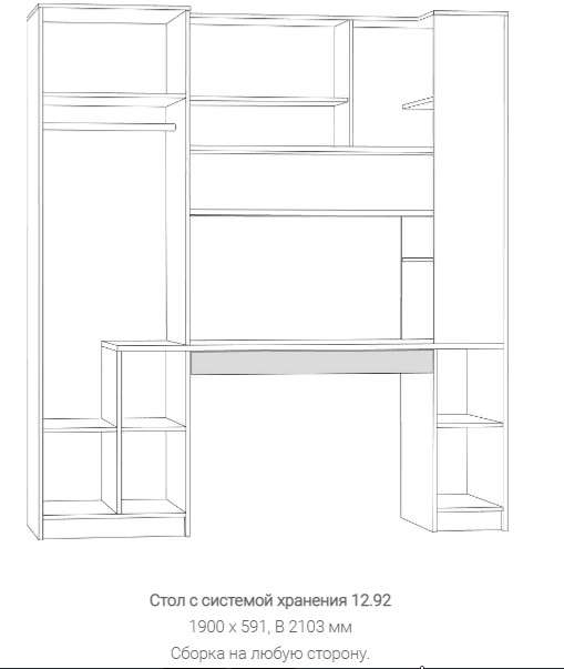 Коллекция Микс с - это больше, чем просто рабочие столы. Они наделены развитой системой хранения: множество полок, витрины для книг и аксессуаров, вместительный платяной шкаф и большое рабочее место. Стол с системой хранения 12.92 имеет просторный платяной шкаф с полноценной штангой., что помогает использовать пространство комнаты на максимум и хорошо подходит для небольших помещений.