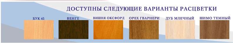Цвет: Бук 65, Венге, Вишня, Дуб млечный, Орех гварнери, Орех итальянский, Шимо темный.