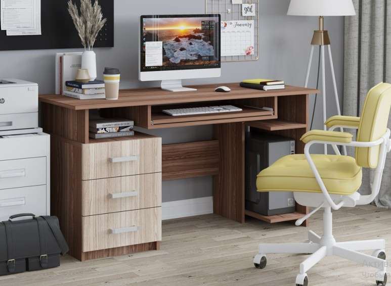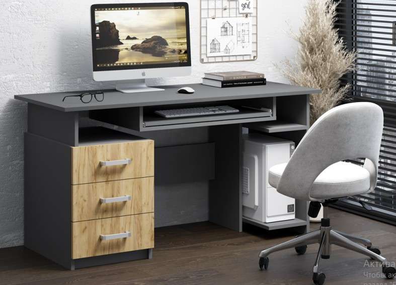 Стильный и удобный стол, который подойдет, как школьнику, так и студенту. Любому человеку, привыкшему с комфортом поводить время за компьютером. Наличие выдвижных ящиков позволяет хранить рабочие документы в порядке, а глубокая столешница легко располагать компьютерную технику. Стол выполнен в самом популярном цвете этого сезона.