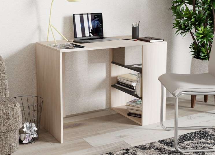 Удобный и лаконичный стол с полочками для размещения книг, тетрадок и других необходимых вещей.