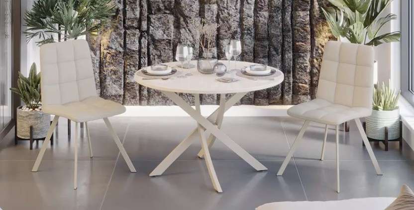Стол обеденный с круглой столешницей , современными цветовыми сочетаниями, подойдет, как для кухни так и для гостиной.