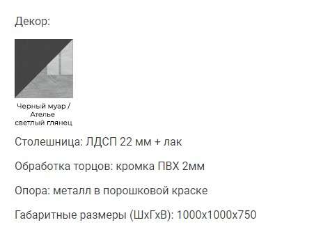 Габаритные размеры (ШхГхВ): 1000х1000х750