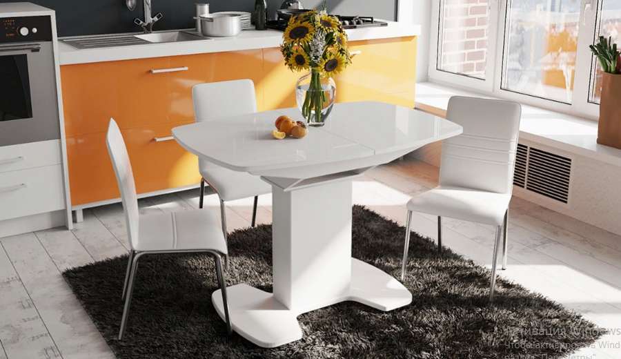 - Модель обладает высокой функциональностью – за счёт внутренней вставки «бабочка», конструкция позволяет из компактных размеров сделать вместительный обеденный стол. Благодаря использованию направляющих синхронного раздвижения, регулировка размеров столешницы осуществляется плавно и без усилий.