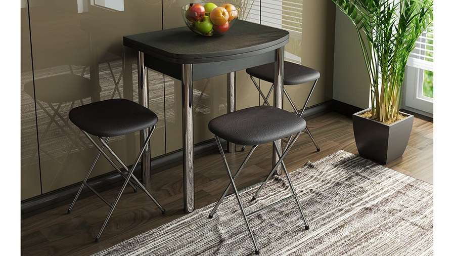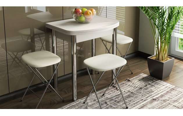 Стол обеденный с хром. ножками «Лион» мини раскладной (ТриЯ)