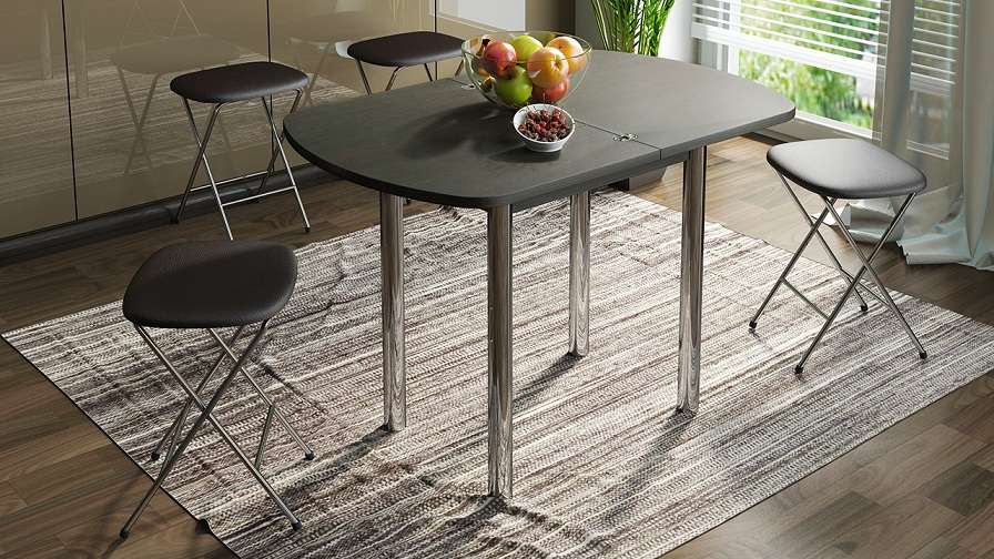 Стол обеденный Поворотно-раскладной подойдет как для кухни, так и для гостиной.