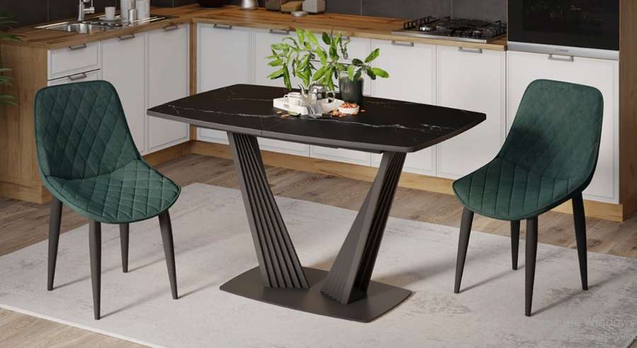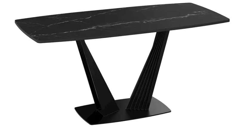 Стол «Фабио» привлекает внимание продуманным дизайном с безусловным акцентом на подстолье сложной V-образной формы, слегка смягченным плавной геометрией столешницы и устойчивого основания.