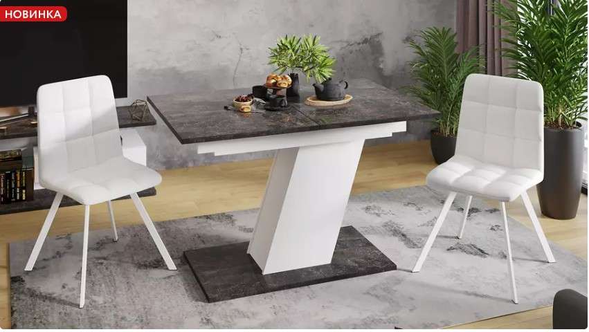 - Новинка имеет оригинальную прямоугольную форму столешницы и основания, выполненных из ЛДСП 22мм и покрытых лаком в декоре «Ателье темный глянец», который придает столу интересный, выразительный внешний вид. Ровные линии и креативное решение дизайна добавят кухне ноток индивидуальности и эксцентричности.
