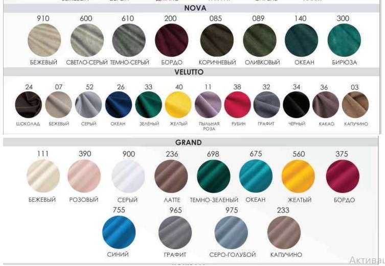 Выполняется в ткани Микровелюр: Велютто, Боска, Нелла, Нова, Гранд.